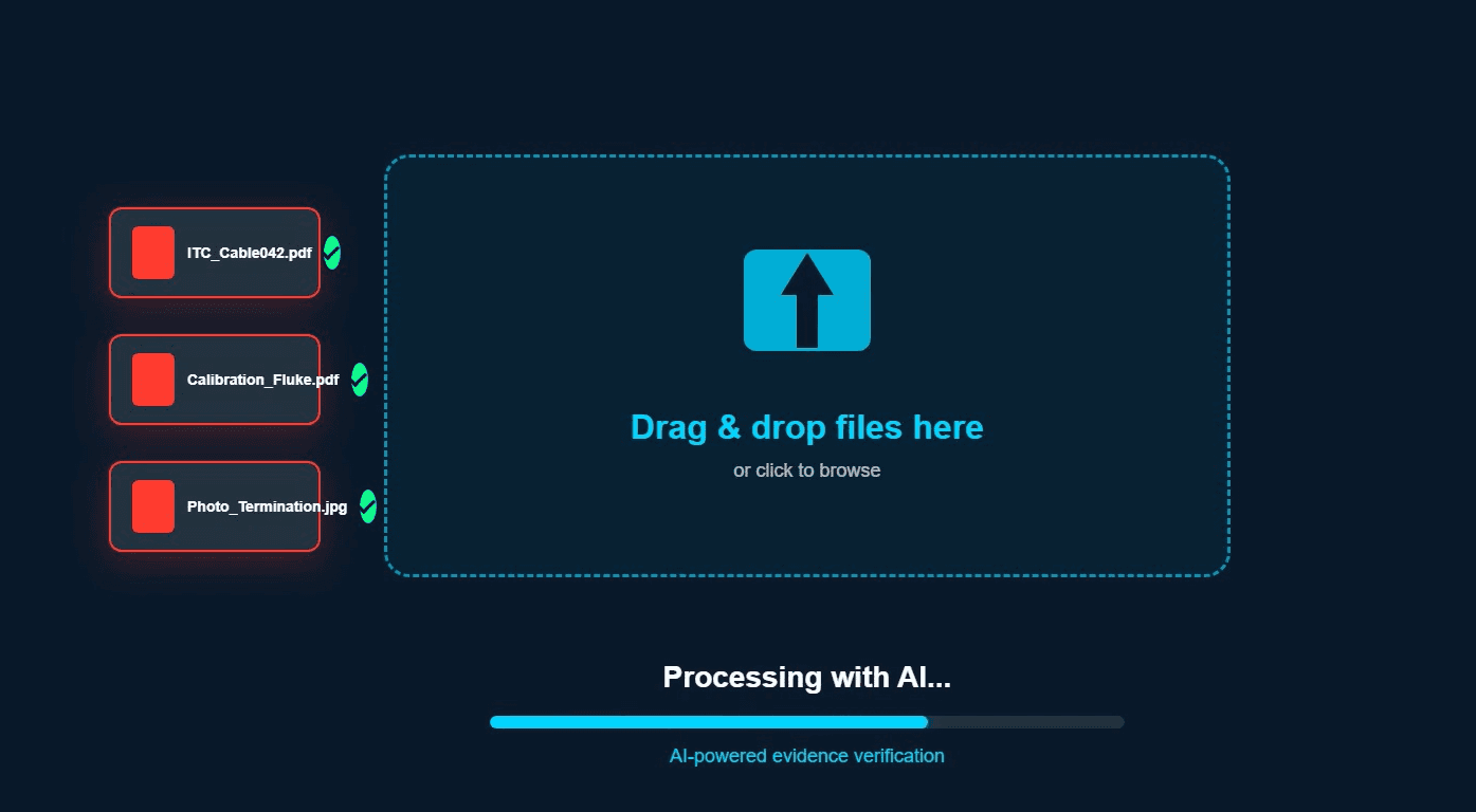 V1 (Now): Bolt-on verification layer, upload completed testsheets/photos/certs.