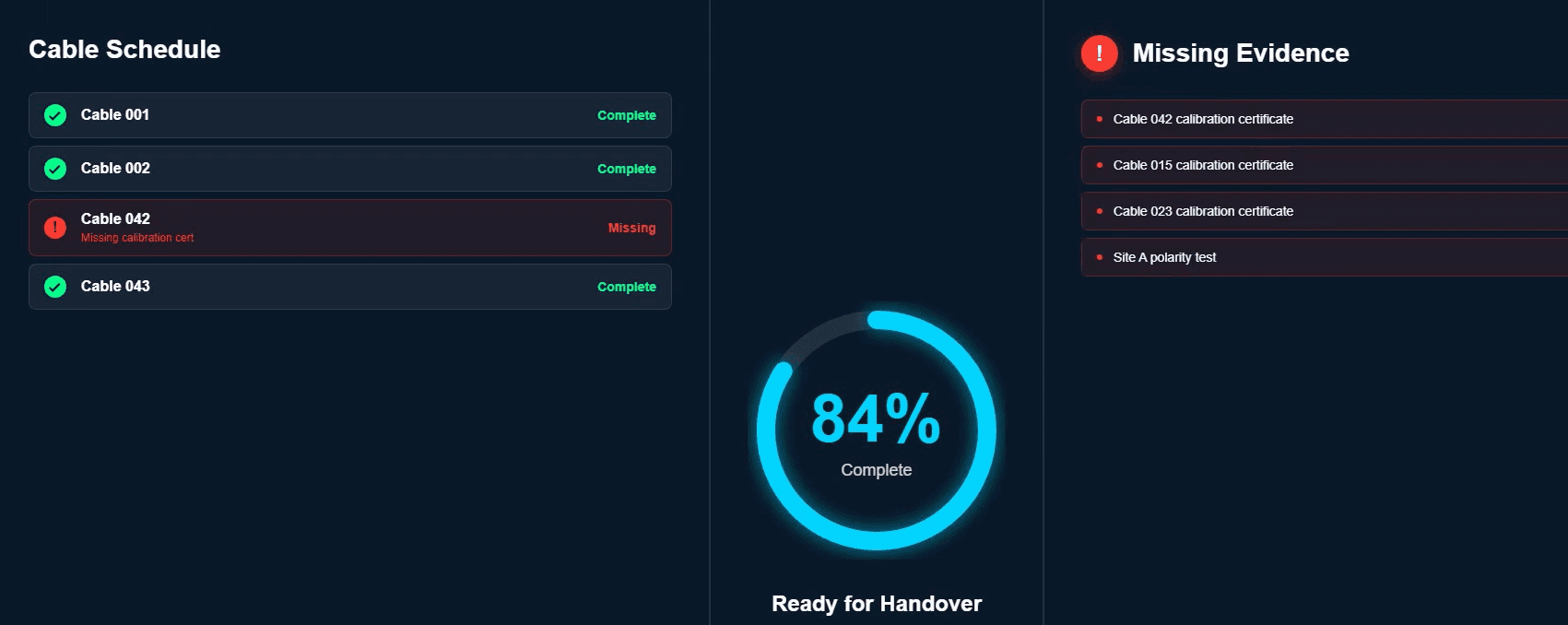 AI completeness checks, audit-ready handover evidence generation.